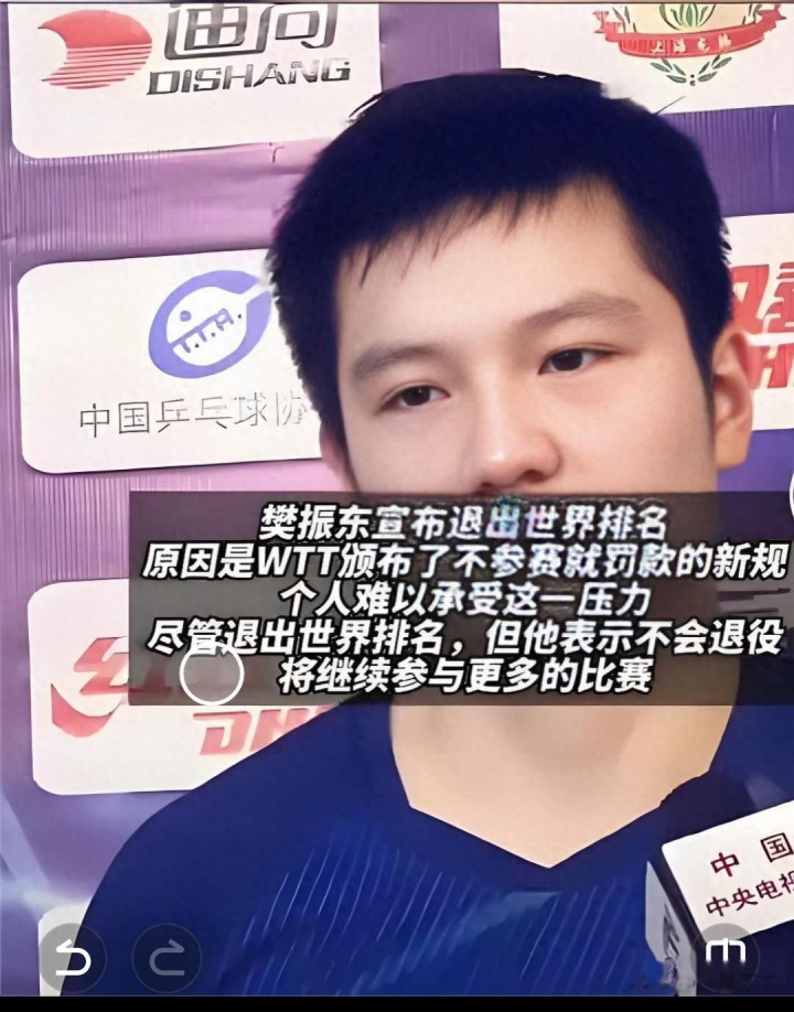 早在一年多前,樊振东因不满WTT不合理的强制参赛、高额罚款、用商业排名绑架运动员,主动退出世界排名,用最硬气的方式,抗议不公规则。