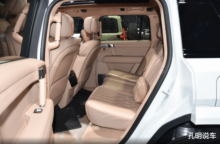 内饰并没有去过分追求极简的风格,特别是保留了大量的军事化元素,比如车内的门把手就采用了手枪造型,台面中控悬浮大屏幕下方还有一排比较硬派的钢琴按键。