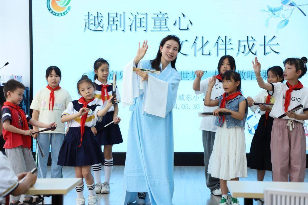 图为嵊州市城东小学的“越剧润童心 文化伴成长”主题活动。(主办方供图)