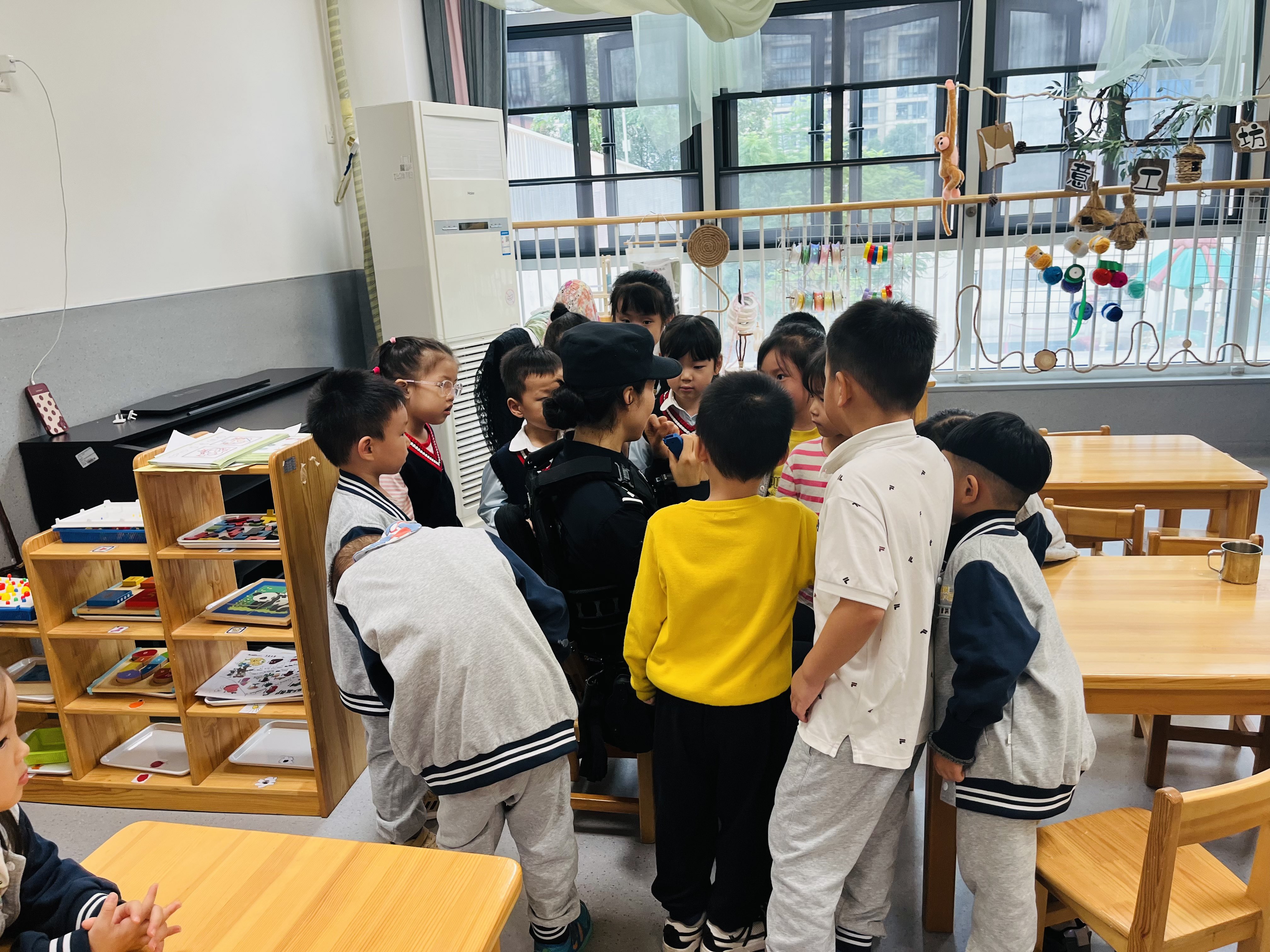 34岁的老将邱宇进入校园,为小朋友做安全讲座(图片由受访者提供)