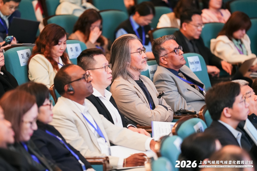 4月23日,2026年上海气候周气候变化教育论坛在华东师范大学开幕。作为2026上海气候周的重磅活动之一,论坛以“绿色发展视野下的气候变化教育:实践体系与知识体系的建立及国际合作”为主题,汇聚了来自巴西、印度、南非、泰国、阿联酋、马来西亚、古巴、越南、哈萨克斯坦、乌兹别克斯坦、印度尼西亚等国家及相关机构的17位知名学者和众多国内代表,围绕气候变化教育如何更好回应全球性危机、服务绿色转型深入交流研讨,以金砖教育智慧共同回应时代议题,来自国际组织、高校科研机构及基层实践单位的近200位代表现场参会,近4千人观看在线直播。