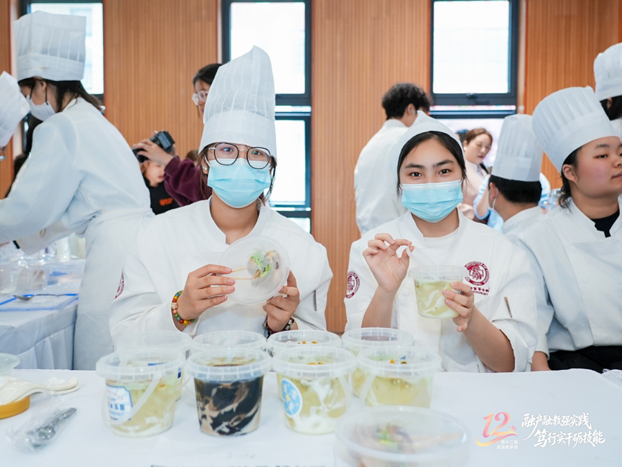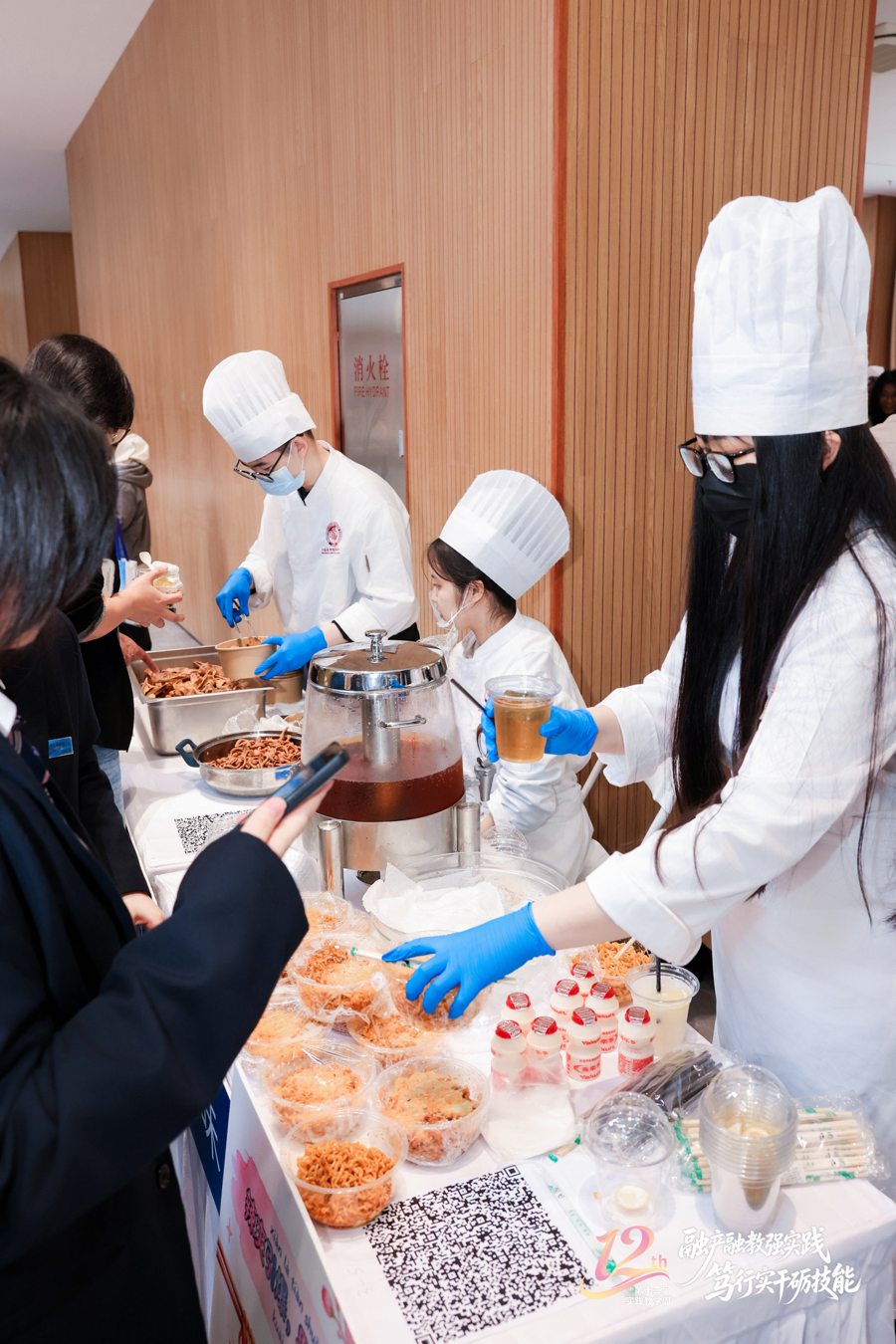 记者见到,仅美食品类,就有传统国潮点心、街边特色小吃、现调鸡尾酒、手磨咖啡等。在人头攒动的酒店与烹饪学院大厅,到处尝鲜、饱受熏陶的新生直呼:“今天到校的第一顿饭,真不用在食堂吃了。”