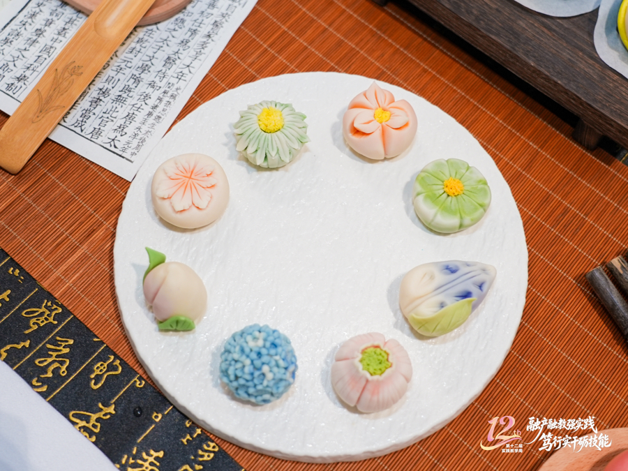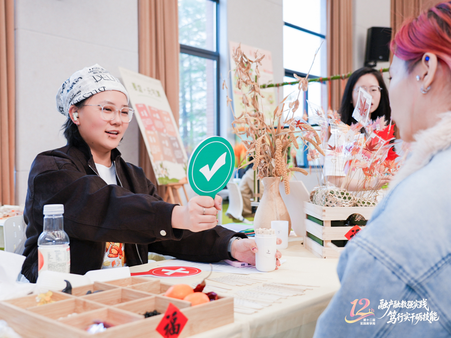 这些大二为主的学生不仅要亲手制作品相精美、味道可口的各式美食,而且还要自己核算成本与定价,全过程体验“经营流程”“自负盈亏”,提升专业技能与职业素养。比如,会展与经济管理学院的学生全程策划,并在校展出“巡游春夏秋冬”二十四节气文化创意展,文创展上滚灯、香囊、冰箱贴等各种手工艺品吸引了不少新老同学甚至陪同家长驻足购置。