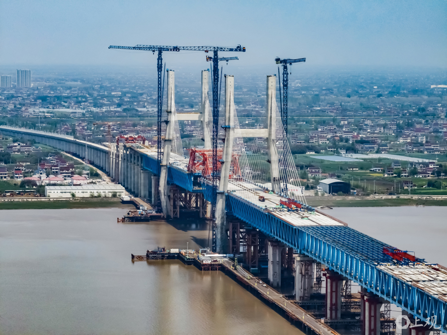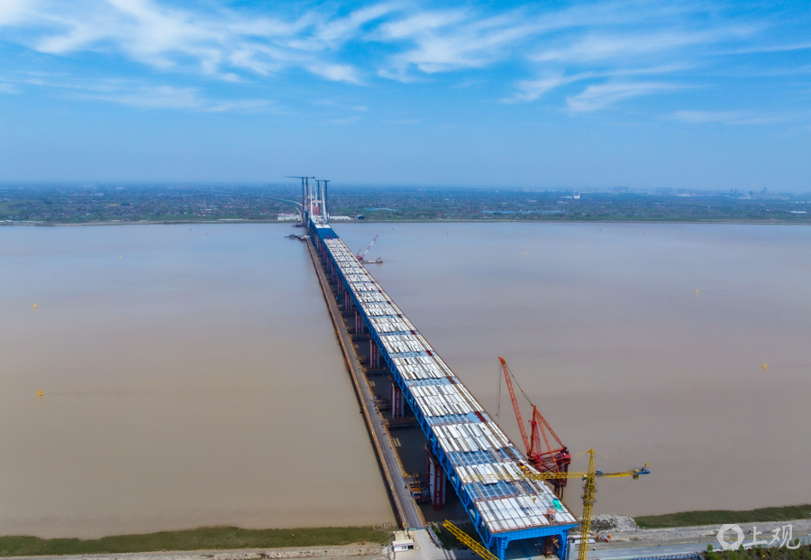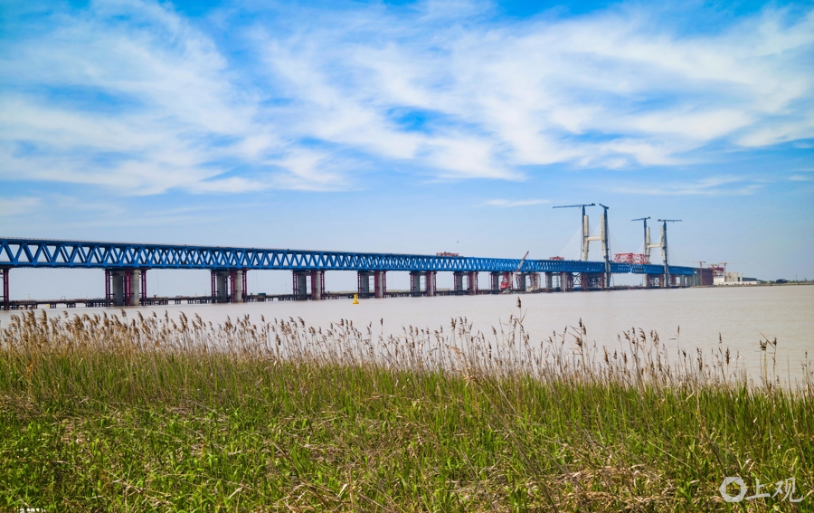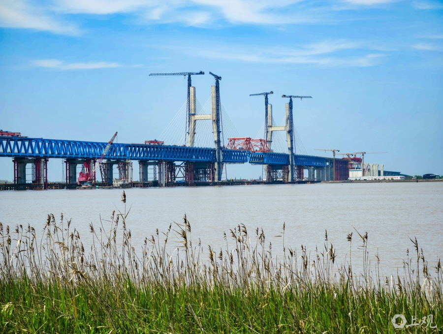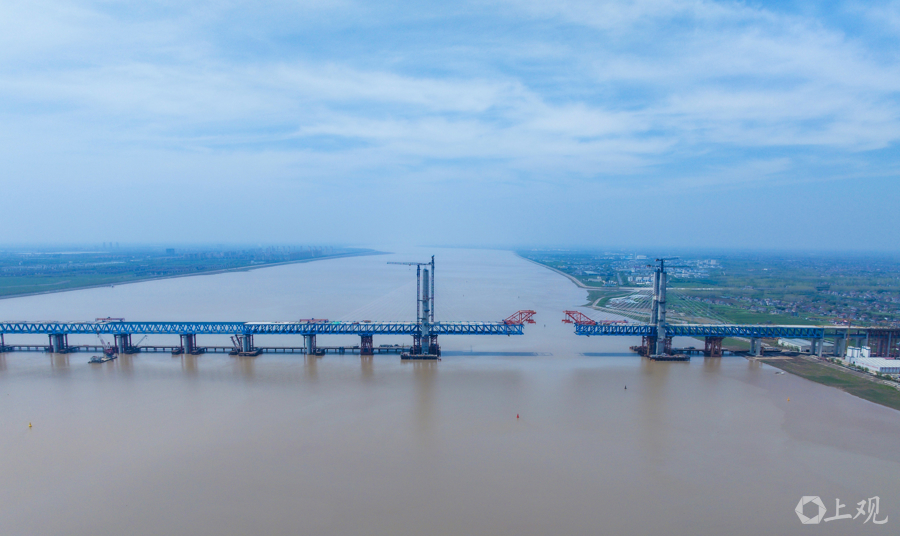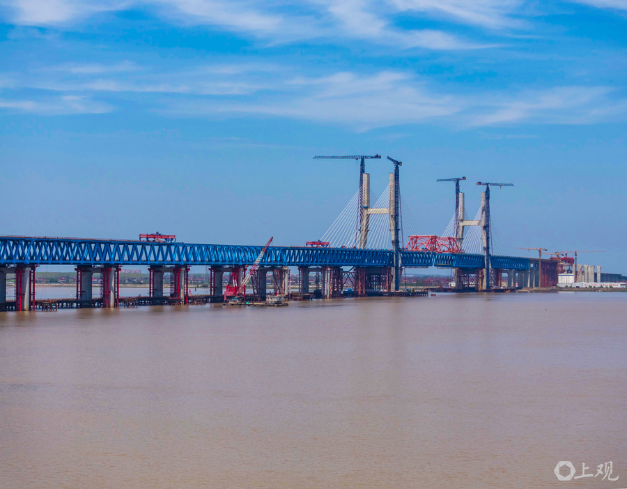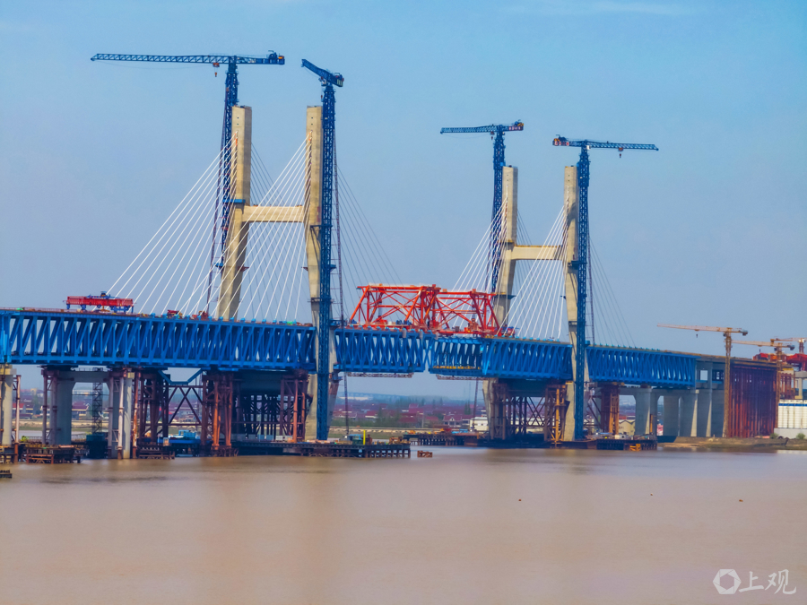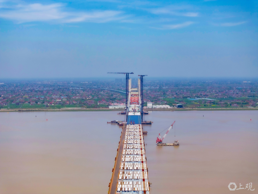 由中铁大桥局建设的崇启公铁长江大桥建设进入百米冲刺决胜阶段。